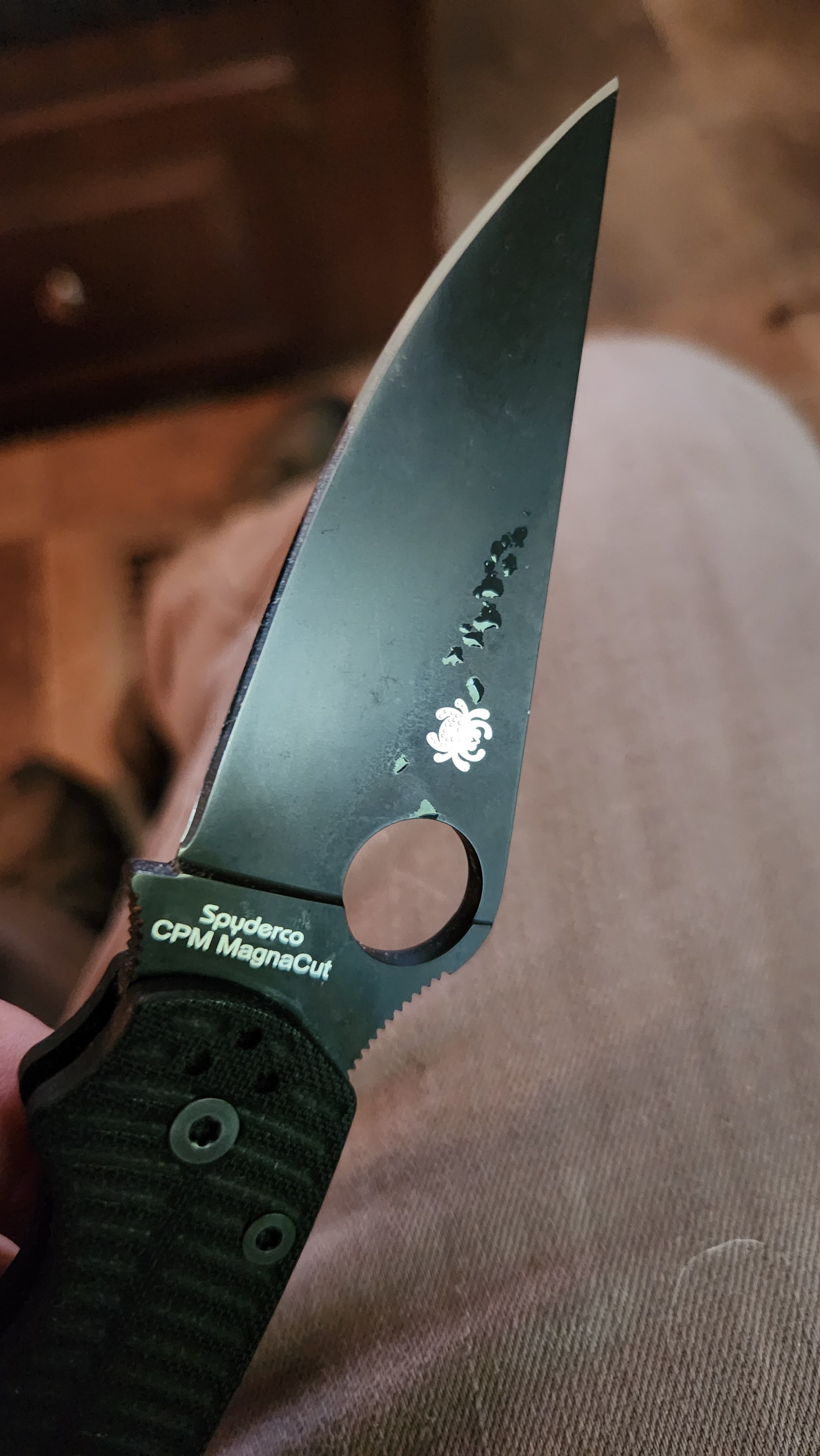 Blackout frame, aftermarket micarta, Magnacut blade....