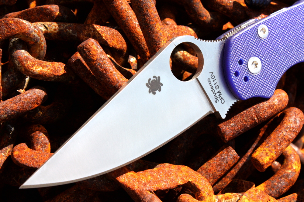 Quite new to the Spyderco world. Here is my Gale Bradley 2 which gets regular carry time and is not a safe queen. Very good slicer because of the saber grind and the M4 keeps a very good edge. With this macro shot it was brand new but currently it is starting to develop its own patina.
