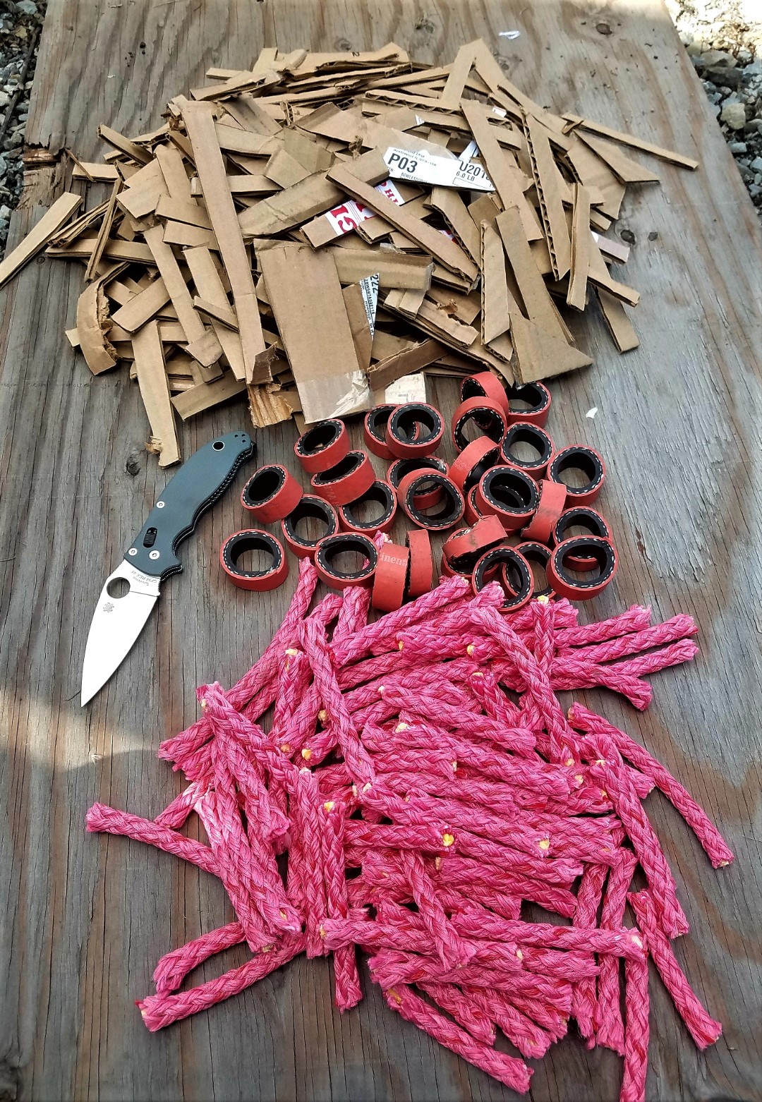 So today I decided to do a bit more cardboard cutting that I normally do. I really should start counting what I'm doing, but I just get in a psychotic cutting rhythm that I don't think..to think :p I took various pictures to try and show the size of the piles I cut today, as well as the thickness of the items cut. Lots of cardboard, quite a bit of the hydraulic hose, as well as the rope. The rope is the same I cut with the Para3/M4, just a different color. Substantially less effort was needed for Manix today, it was a breeze. Could have cut for hours. Not to my surprise, it easily cut paper and even enough for the thin twisty pieces...which I've never been the best at cutting, but it can definitely do it if it were someone better at it than myself. After cutting the cardboard and through all the tape from the boxes, the blade was pretty gunked up but the hose and rope scraped it off and allowed it to really glide through those materials after the first few cuts through, when I was thinking maybe it was starting to lose that edge. Silly me!
