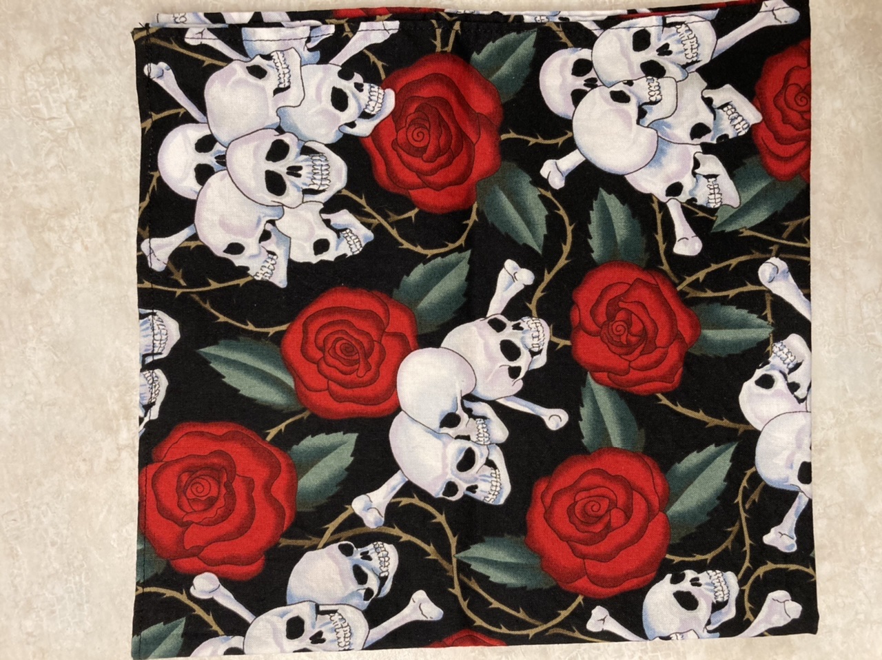 I just wanted to show a couple of the many patterns done by Rockmount Ranch Wear, in Denver, on their bandanas. These are 19” x 20”, (48.2 cm x 50.8 cm) after washing, and they’re single sided. Obviously, full color printing isn’t a problem for them. I don’t know if Rockmount silk screens these themselves, or if they’re done elsewhere, but they are made in the US. Could this shorten lead time if Spyderco went to the same maker with a Spyderco design?