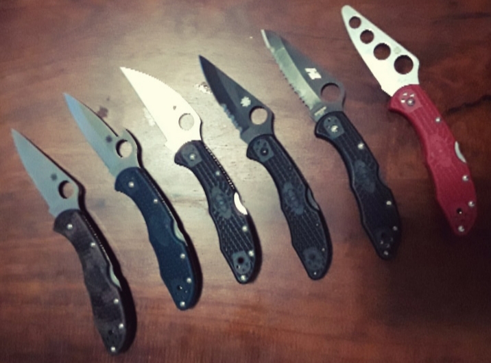 Current spydie collection: Watu, Rhino, UKPK Salt G10 bladeswap, Yojimbo 2 Smooth G10 Cru-Wear, Manix lw “mystic” 20cv, SmallFly 2, Waterway, Ladybug k390, Caribbean
