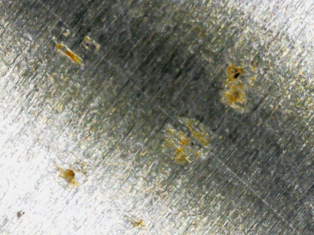 After finding that I decided to check my other knives and found my PM2 Maxamet with pitting and surface rust. I don't remember cutting anything corrosive, it's just a small area that looks like a smudge. This finding made me pull out my usb microscope to see how bad the pitting was.