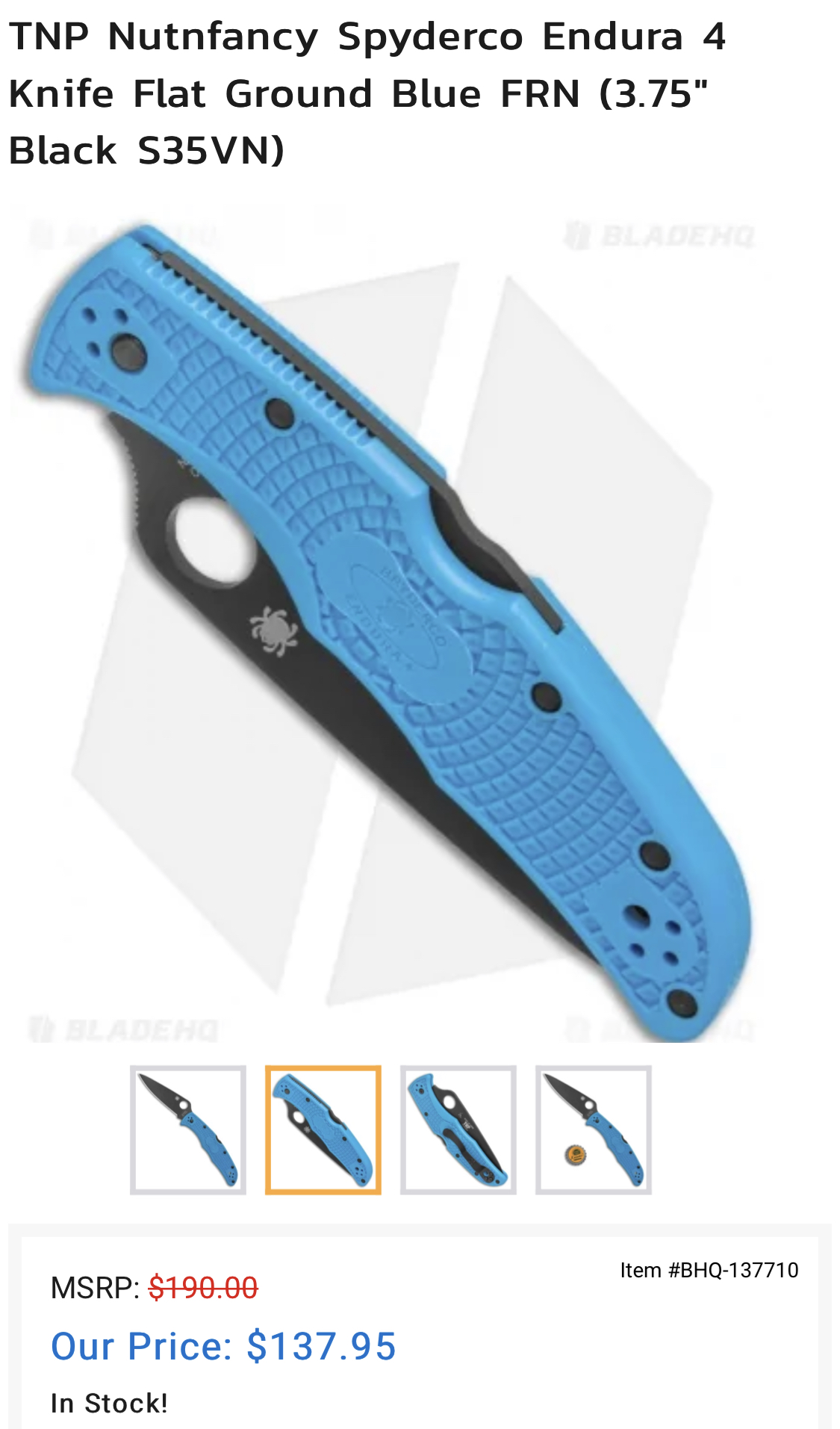 Endura4 CPM-S35VN Black TiCN Blade Blue FRN C10FPBLBKS35VN TNP/BladeHQ (Japan) is/was in stock at Exclusive Dealer for $137.95. It looks like 1009 pieces were made.