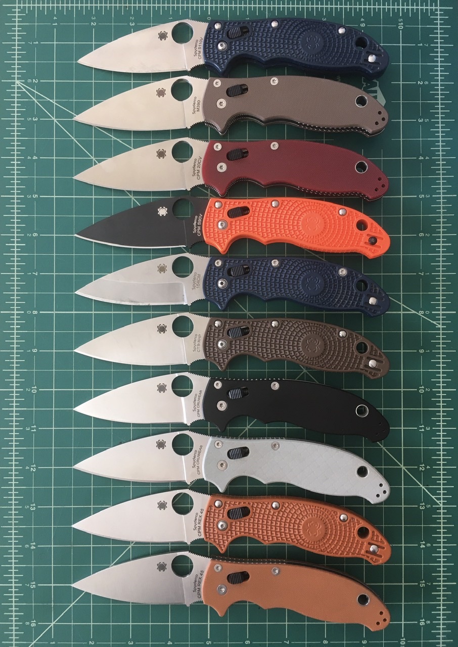 Have: old S30V Native, HAP40 Endura, ZDP DF2, S110V Manix LW, Cru-wear Para 3, SE H1 DF2, S90V Native 5, K390 Urban, SE Pac Salt, P.I.T.S., XHP Manix LW, SB Caly 3, B70P, PMA11, K03, Kapara, REX 45 Military, 154CM Manix LW, Swick, AEB-L Urban, KC Cruwear Manix, M390 PM2, Mantra 2, CruCarta Shaman, M390 Manix, K390 Police 4, S90V Manix LW, Rex 45 Manix LW, 20CV Manix, Rex 45 Lil’Native, Shaman, C208GP, Cruwear Manix, Cruwear Manix, M4 Chief, Z-max!!!