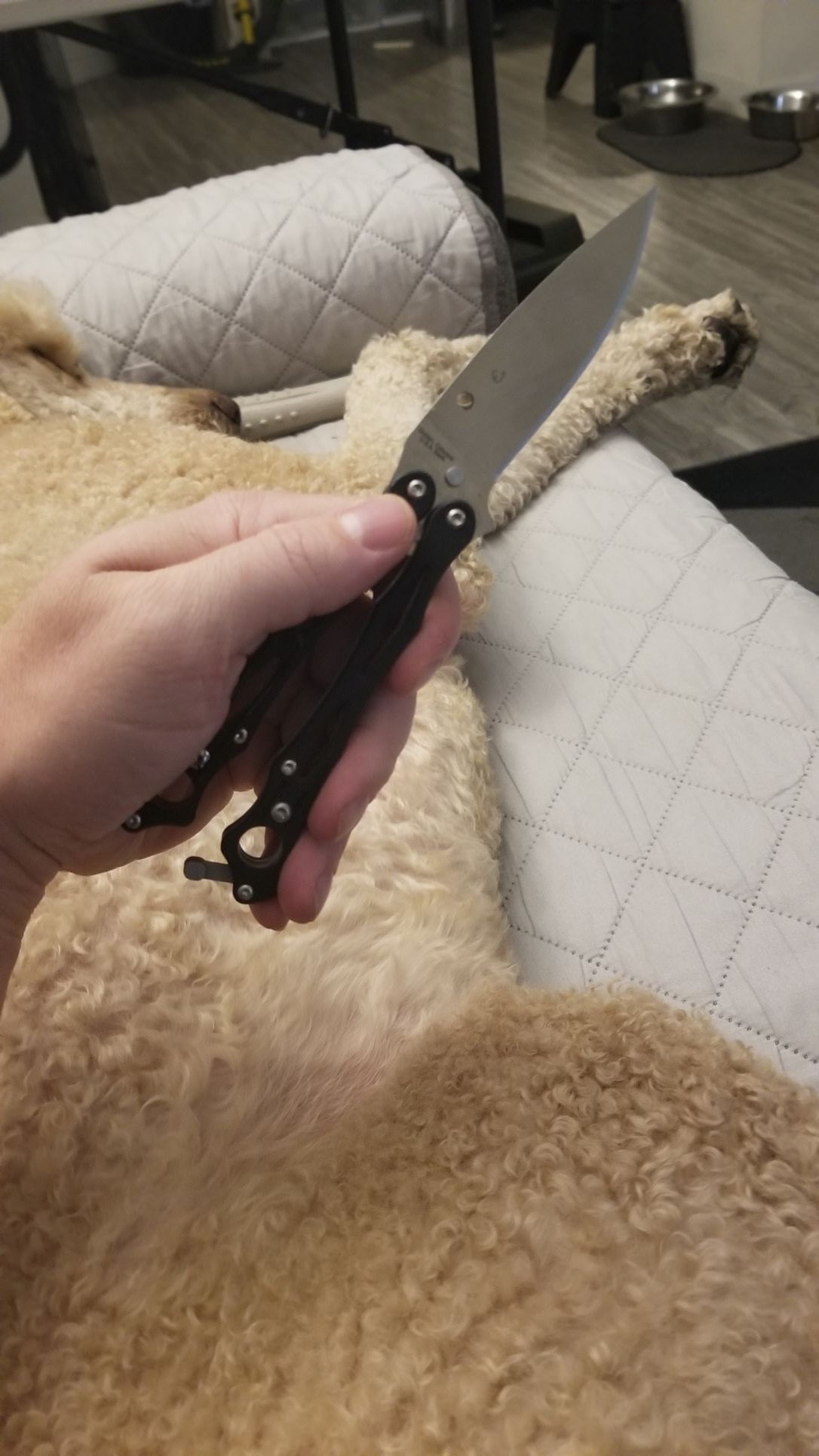 I've learned not to mess with a balisong before I go to bed or before I have to drive somewhere. In case I have to stop the bleeding. :grin-smiling-eyes