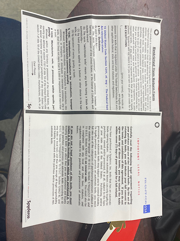 Para 3 Dark Blue G10 S110V (First Spyderco), PM2 Black G10 S45VN, Manix 2 LW Translucent Blue BD1N, Sage 5 LW S30V, Shaman G10 S30V, Tenacious C122BK SE LW, Native 5 LW SE S35VN, P4SE K390, Delica 4SE K390, Endela SE K390, Caribbean SE LC200N, Dragonfly 2 S30V (wife's first Spydie), Autonomy 2 Black LC200N DLC SE.