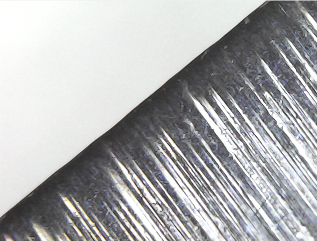 Side1: Side2: It looks like one side is rolled over. I took a bunch of pics, in different places, and it definitely looks like a convex edge on one side moreso than the other.