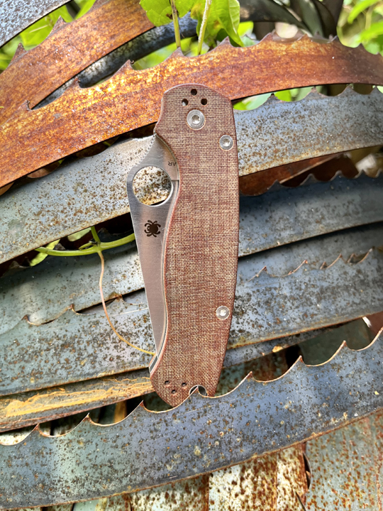 I figured I would post my picture this year early just to set the bar high for everyone. I took this picture last year of my PM2 Cruwear Micarta while on vacation with my family in upstate New York, right on the Canadian boarder. I do woodworking and while there I was trying to source some lumber for projects. I have made some friends with the local Amish saw mills up there and they sell rough cut lumber at great prices. While there I saw a few old rusted band saw blade they use on logs and figured it would make a great backdrop for my knife as the rust colors really are interesting. Old tools with a new tool, I just hope my PM2 will only patina and never gets that bad.