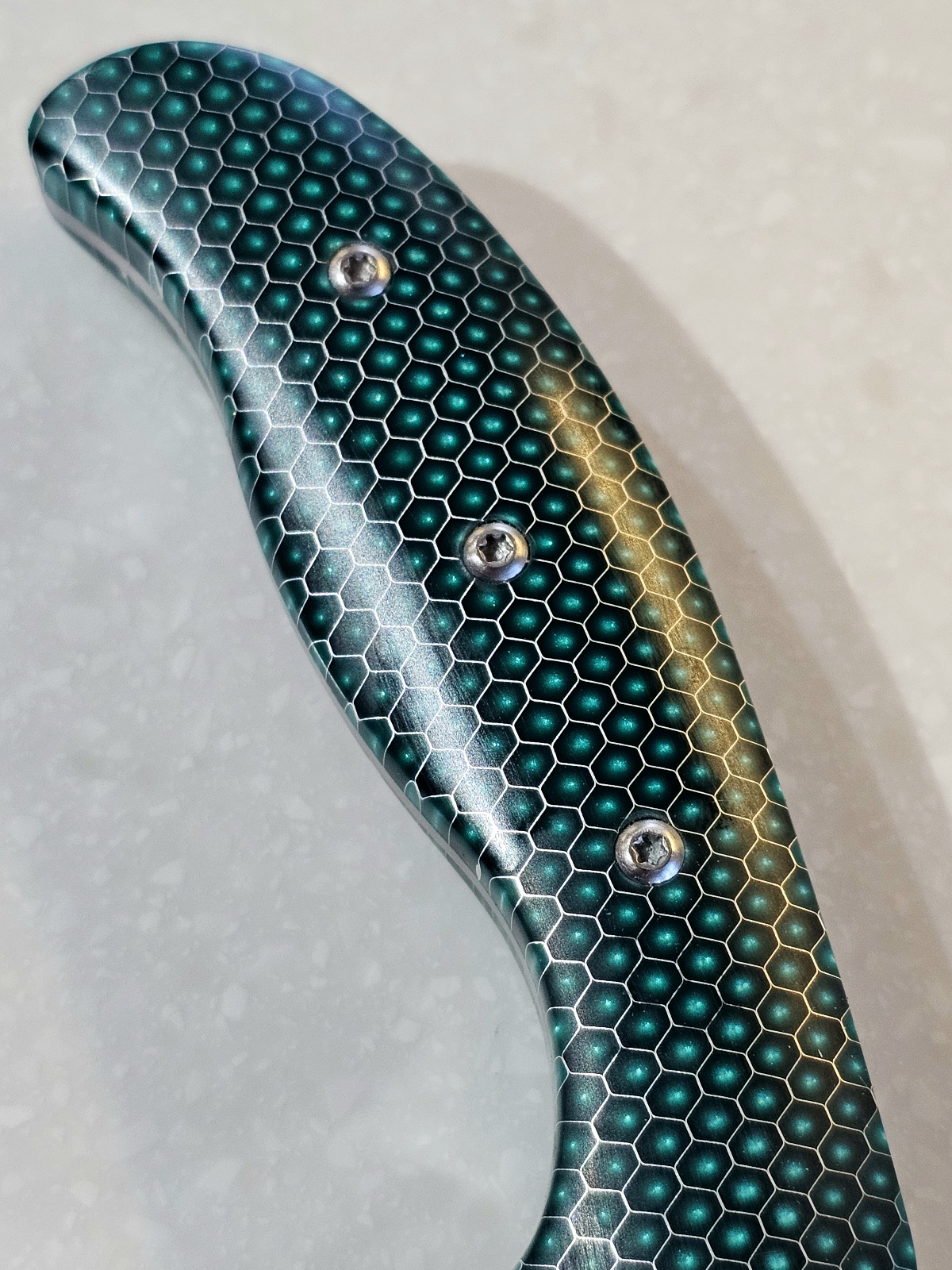 Finally got my green honeycomb scales finished. Now I just need to figure out a nice color sheath to go with them