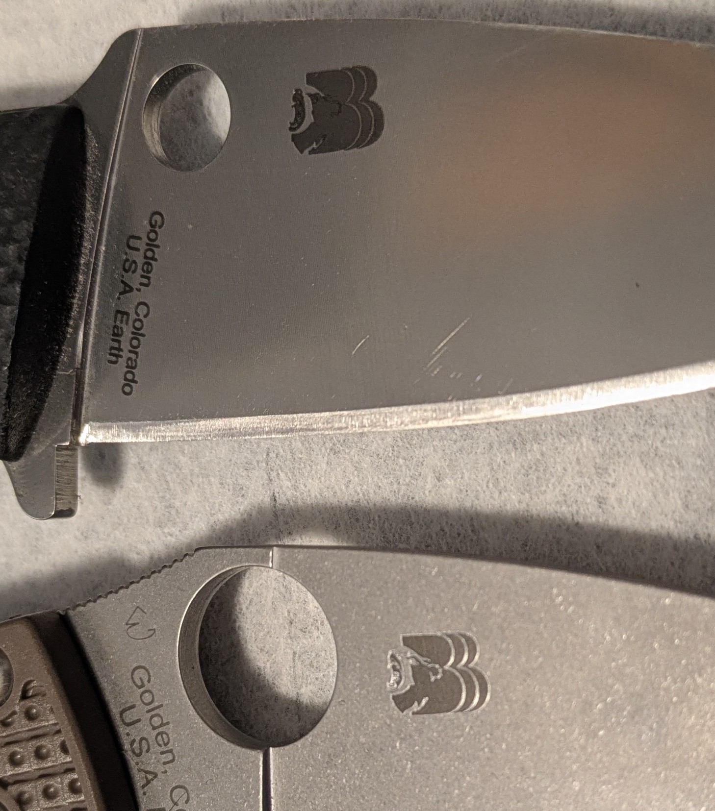 I also compared it with my Manix 2 in Maxamet and REX45. The fasteners on the newer Manix 2's look nicer. The BBB logo is nicer than on my Manix 2 HeavyWeight. Interestingly, Eric's logo is a little lighter on this model.