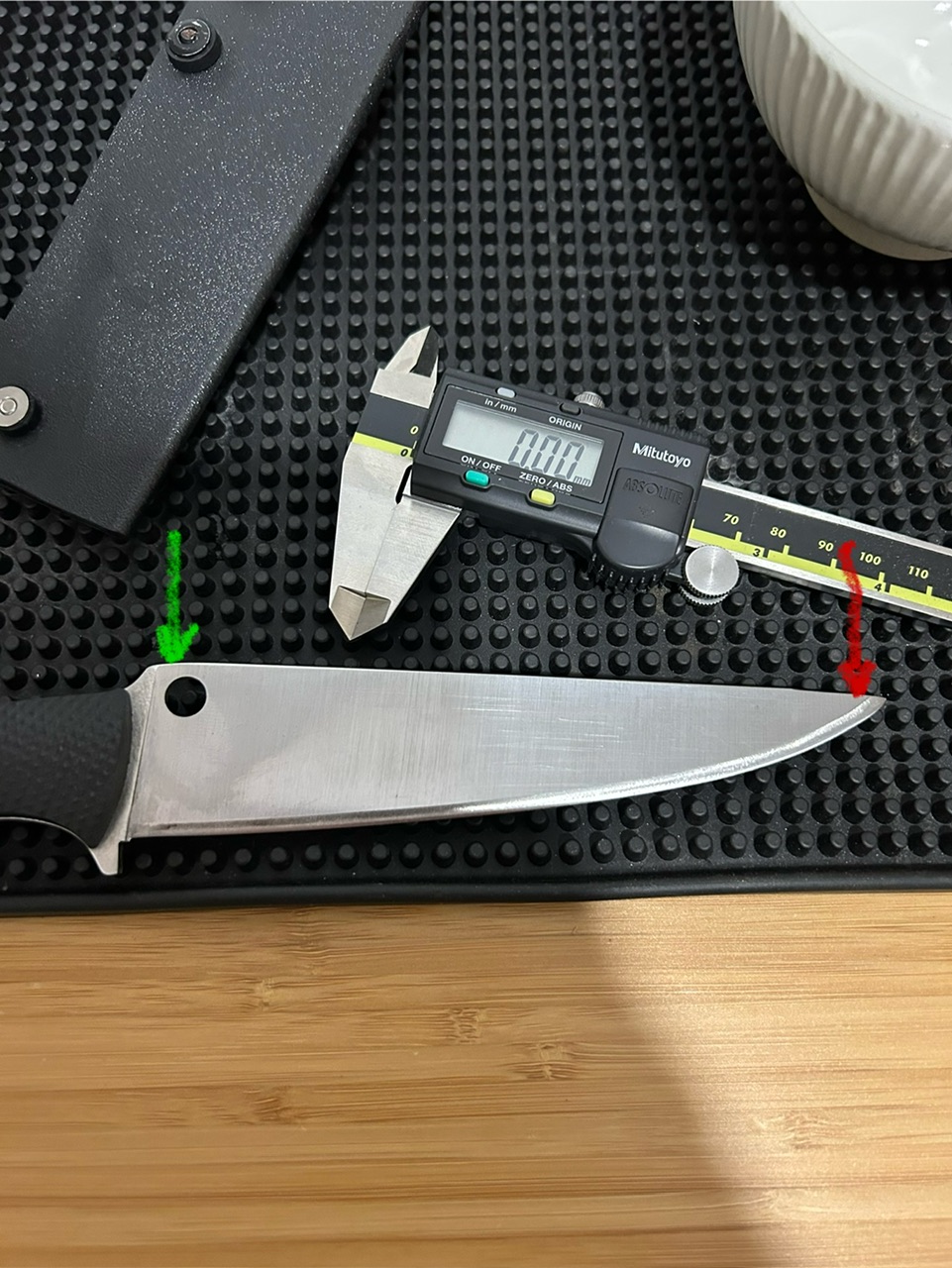 Regarding thickness for a potential run of 6 inch mules I think this is a good middle ground - thick enough for multiple uses but still plausible for food prep. I’m not sure if it is too great a compromise and that a 2mm to 1mm taper might be an order of magnitude better for testing for food prep knives if that is the goal (@vivi?), but as it is it is better in the kitchen than most of my commercial colour coded handle chef’s and butcher’s knives. Maybe a taller 3mm stock blade with a lower angle taper from edge to spine might be an improvement (and at the same time improve knuckle clearance on the standard mule handle).