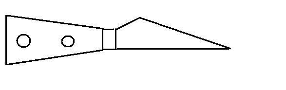 don't have any of my chokwe knives with me in virginia, and i'm not too good at knife pictures anyway... but the design has a triangular handle, a full flat ground blade (forged from a large nail, or scrap metal), and a good tip. there are even indexing holes drilled into the handle, and a full tang through the handle!