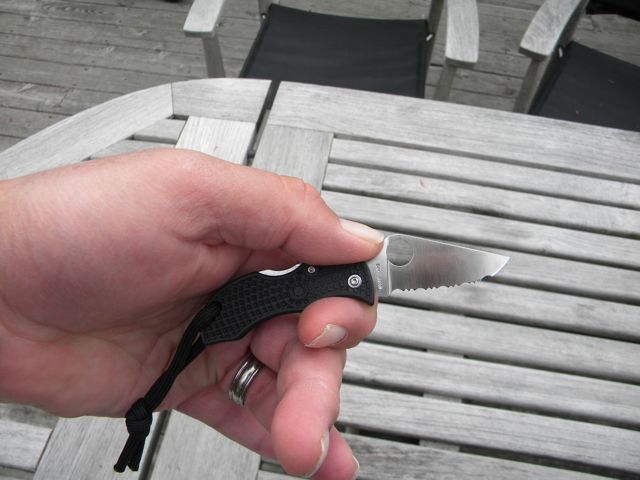 For the life of me I don't understand what people see in serrated edges. I've always thought you should have one for the times they are better. I'm thinking lots of rope tasks, etc. I just don't have tasks that a plain edge won't do so I don't have to worry about sharpening a serrated edge. I'm tempted to get a serrated Manbug now and carry it as my little knife instead of my plain edge one. That would be my Manbug "serrated" challenge. The only way to understand is to experience. I'll also carry something larger but 90% of my cutting the Manbug will handle. It feels MUCH sturdier than my Ladybug3 salt. It had a screw in the pivot BTW which I am a huge fan of myself.