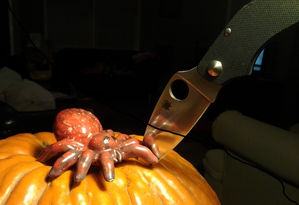 I won the September GAW, thanks w3tnz, and I'm passing things forward. The theme this month is Mule Teams, and Halloween, of course. Up for grabs is a MT04, a ZDP-189 Mule with a Dymondwood and brass handle and a leather pouch sheath, both made my me. A little sweat equity going out the door. To enter, post a photo of one of your Spydercos in costume, as part of a costume, or along a Halloween theme. I'll use a random number generator to choose a winner on October 27. I'm choosing that fairly late date because I'll be traveling mid month. The good news is that everyone has plenty of time to enter, so let's see some nice photos.