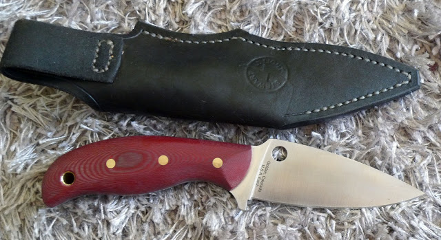 A little accident ocurred when making the slabs. I never had this before with any mule. While clamped in a vise for filing and sanding the steelpart above the spyderhole cracked. It is barely visible in the picture but there. It will hardly effect the performance of the knife and this one is a keeper, so no problem. Although because of this I am doubting the tensile strength of 110v in my blade. This because I never had broken mule in the past and the vise is always there making handleslabs. Nevertheless enjoy the pictures as I will enjoy this mule :) Cheers, Tomas