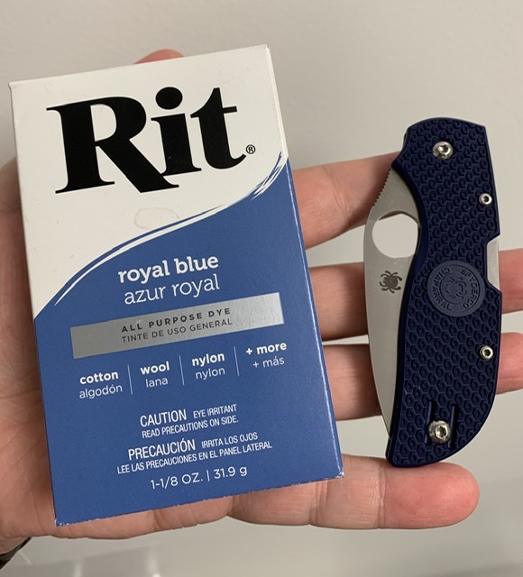 I think this is the 4th dye job on this knife so far. It's Rit Dyemore Sapphire Blue. Once I'm bored with this I think some shade of red is next.