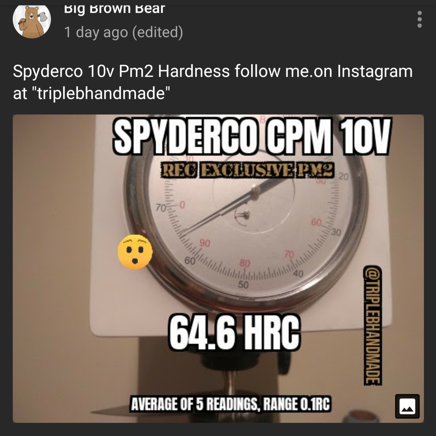 Also, Kurt (jcoolg19) on YouTube has done many many tests. I recall that the XHP Manix LW was tested at at or a hair above 61 hrc, but I don’t see it in the list.