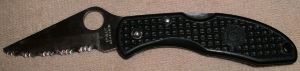 First of all, thanks to all for the welcomes! RYCEN, I don't think I could ever place a usable, knife in a case. Currently, I have approx 25-30 different "usable" knives, and my philosophy is simple: A knife is a tool. A tool belongs in a toolbox where it can be found and used if that is the tool for the job. A glass case is for antiques which, although might still function as the intended tool, are worth far more if kept in that condition and only viewed and enjoyed. (Actually, I just enjoy my knives too much to place in a case, even though I should put some of them into a case now and again.) Here are some photos of the poor 'ol Delica. She has served me well, and I intend on having her repaired if possible and put back into service. :D