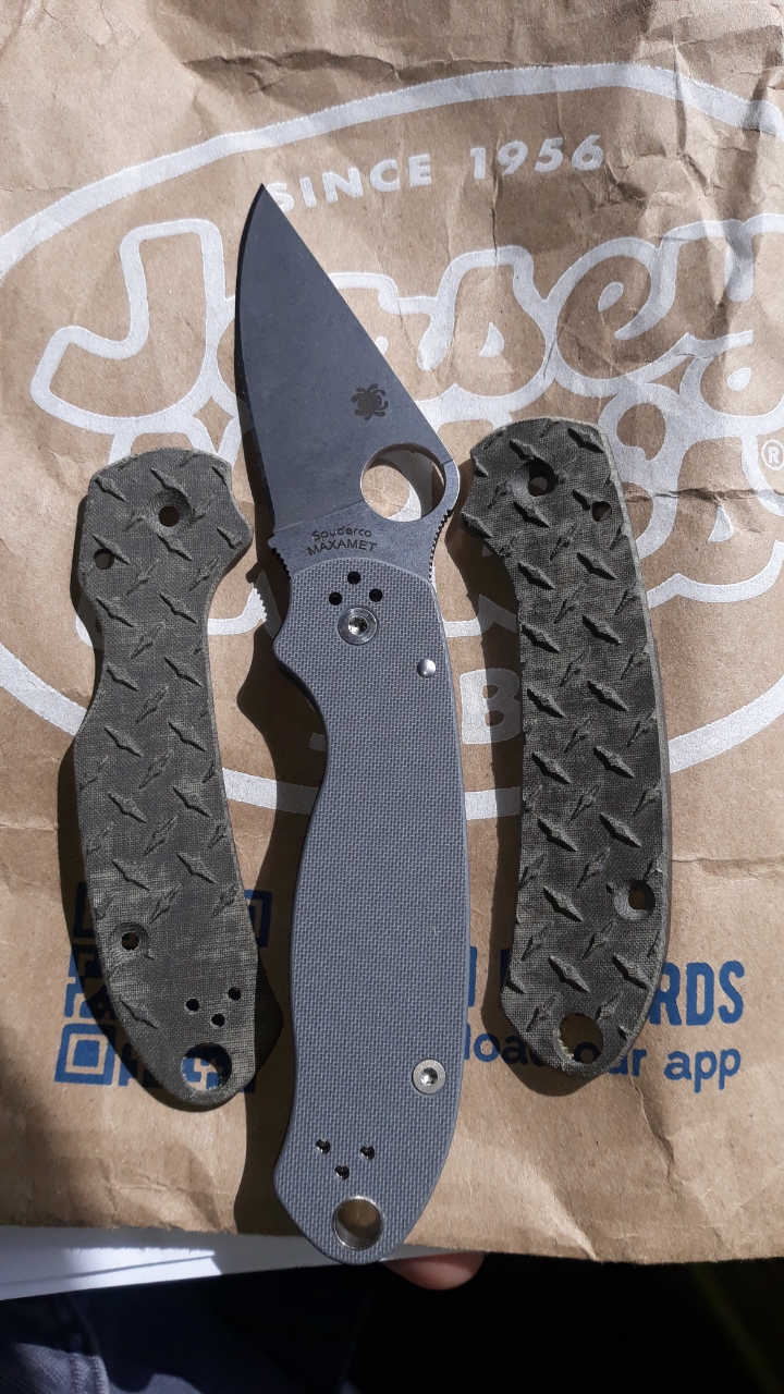 I swapped the scales on my Maximet PM3 for Green linen micarta with a diamond plate pattern. Before putting them on, I "polished" the tops of the diamonds but left the rest natural linen finish. The scales soak up oils very well for that patina look while still leaving the gloss finish on the tops of the diamonds