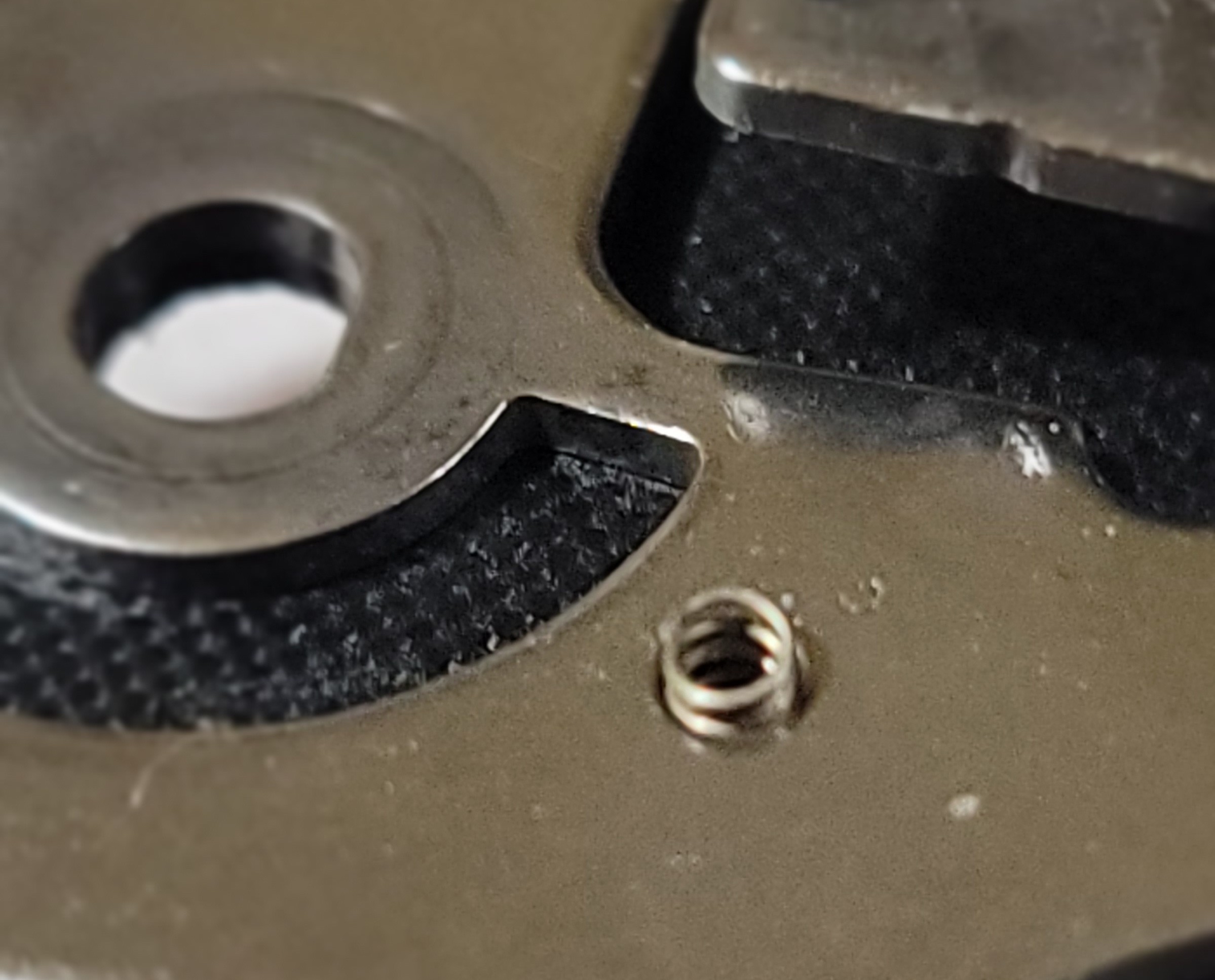 So being me and mine, I did it this way instead. I felt confident that it would give me just that little more button travel to get the blade lockbar drag off the tang and free up the blade... I just wanted to be able to clutch this blade and it drop free and clear.