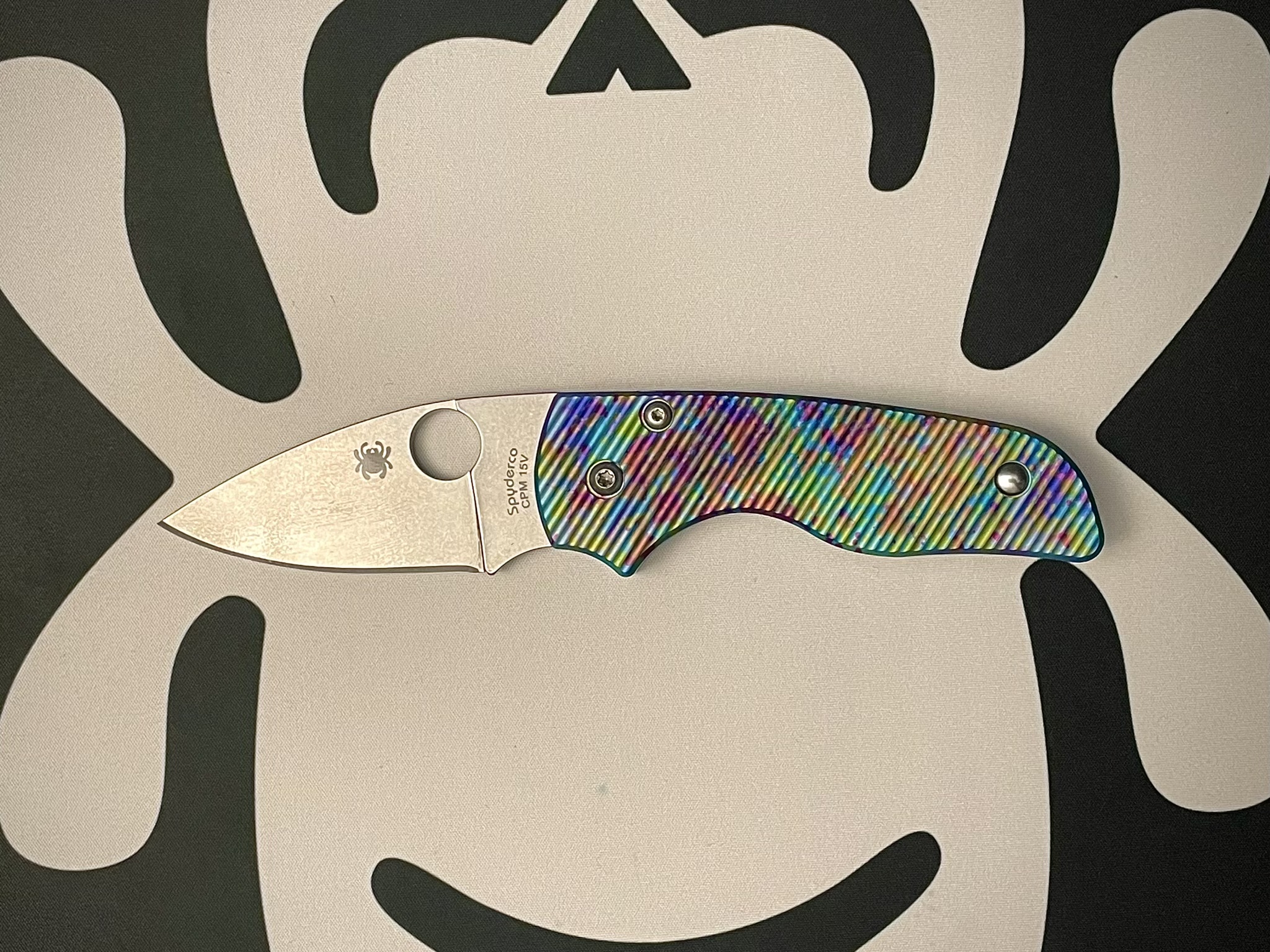 I polish to a shine and then flame it to desired color. I even buff the little spyders I use in my lanyards and flame them, they are all cut from Titanium, they color out pretty nicely if I do my part right...