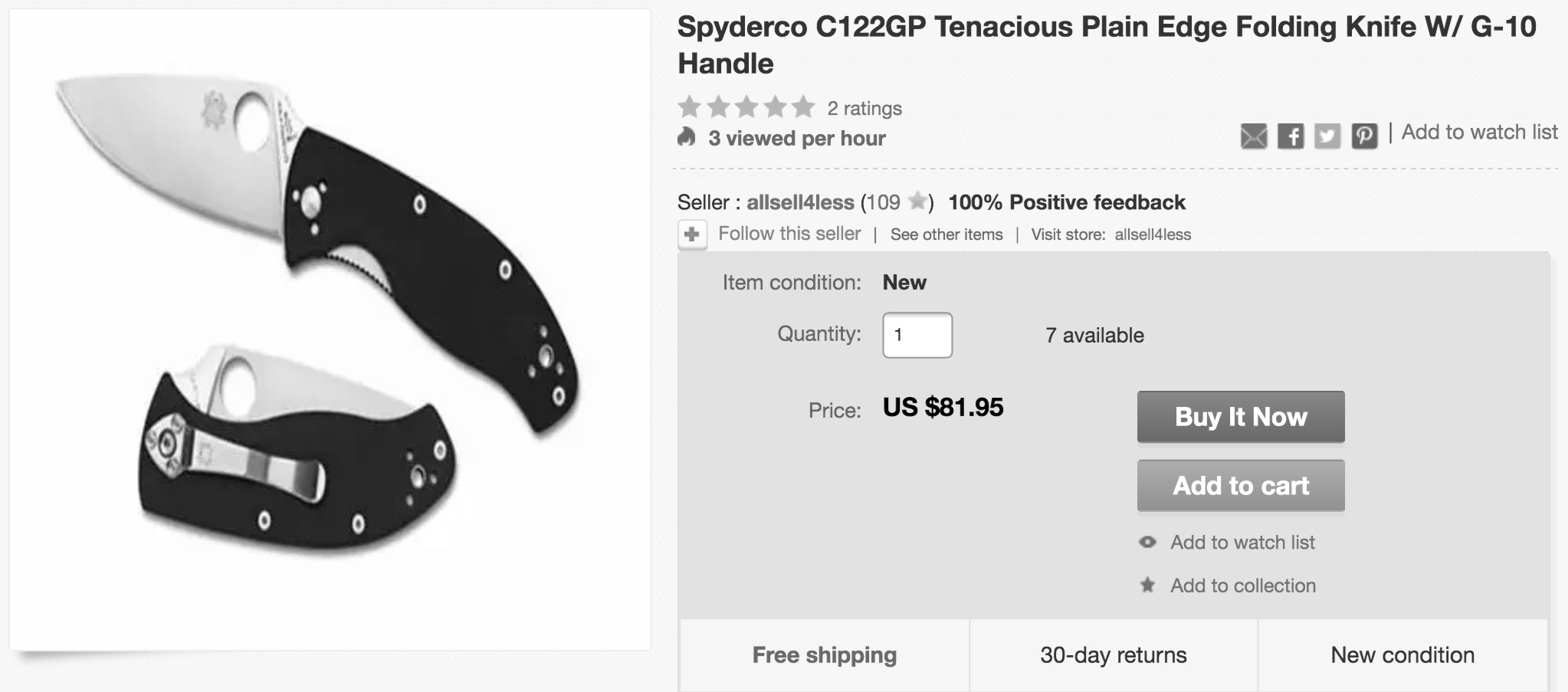 Wow, yes they do. With the looming 40% MAP in less than a month though,RamZar wrote:Cutlery Shoppe has many Spydercos at 45% off MSRP. However, stocks are depleting.Mad Mac wrote:Not 50% off but 45% off Pink Ladybug 3 at Cutlery Shoppe.
