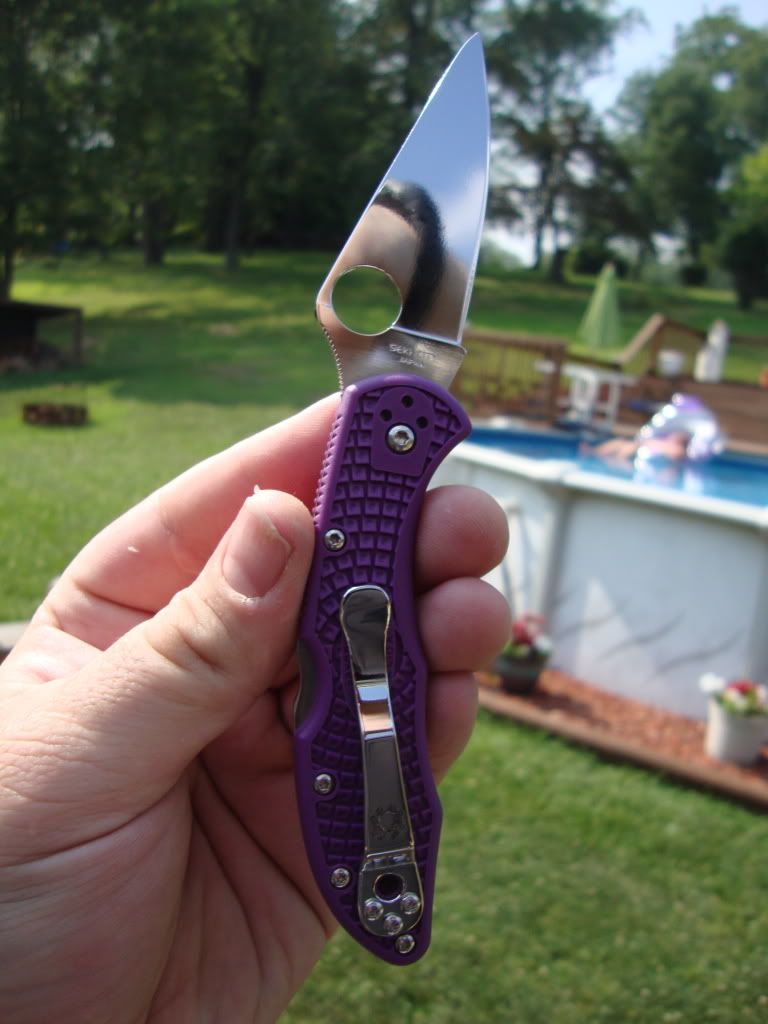 mirror polished clip and blade purple delica and black stretch