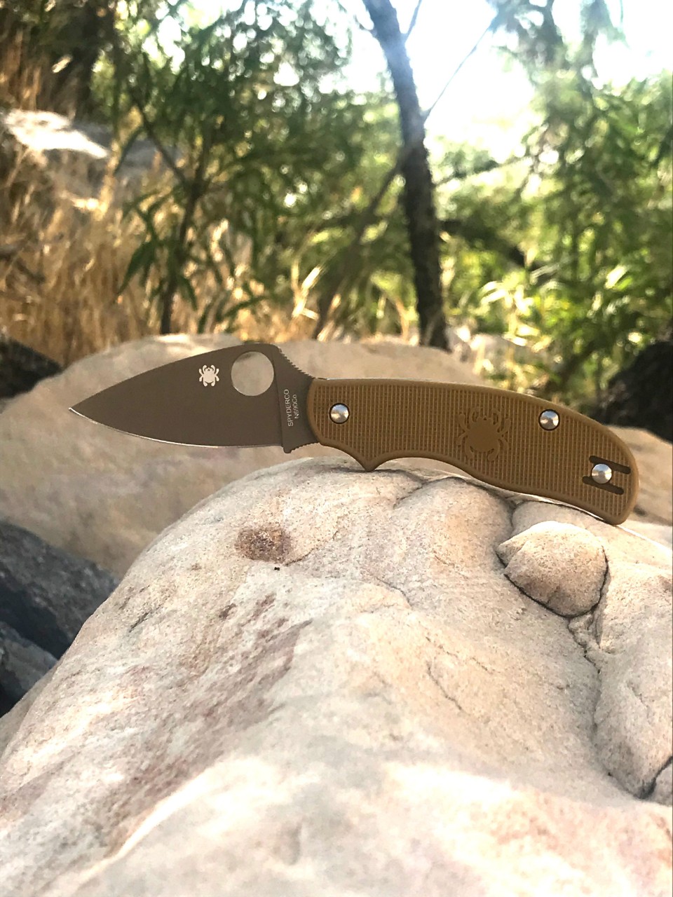 This is a one off Spyderco Urban, with a brown coating on the blade. I really like this knife because is is really light, and is stays really sharp.