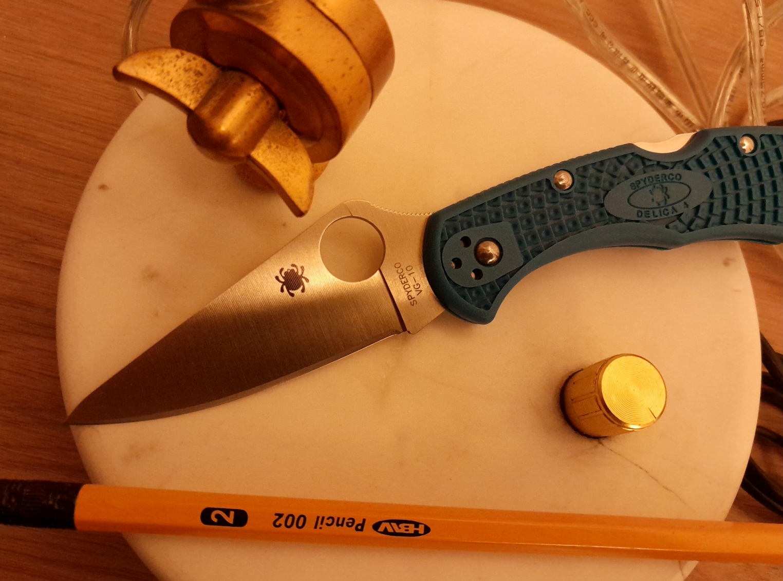 Swapped the coated blade from a Pink Heals Delica onto my blue FRN VG10 variant, and came up with a black and blue Delica