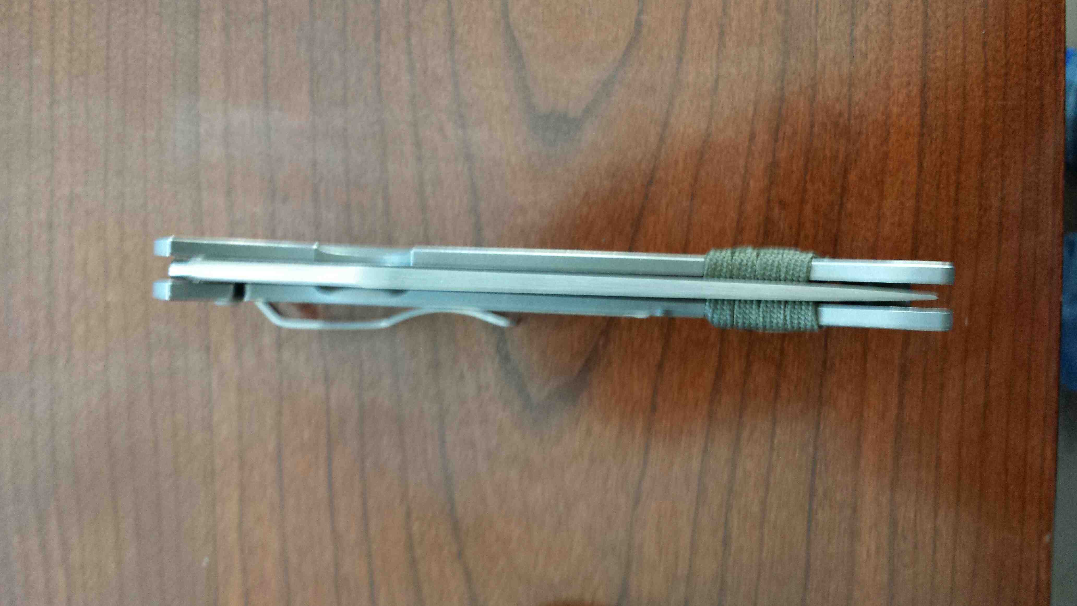With only 4 wraps around the handle near the closed tip i got relief from one corner and no issues with friction. As a bonus i think it breaks up the large slab of plain titanium with a splash of OD green!