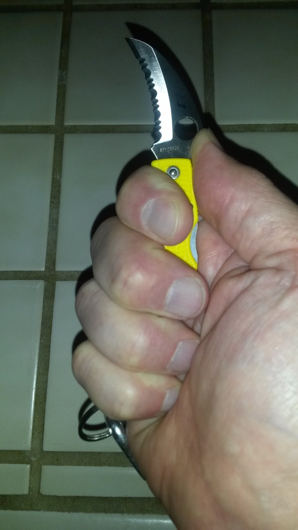 4. With it setup as above, in hand, it feels very comfortable in hand, and is as useable/practical as any full size knife;
