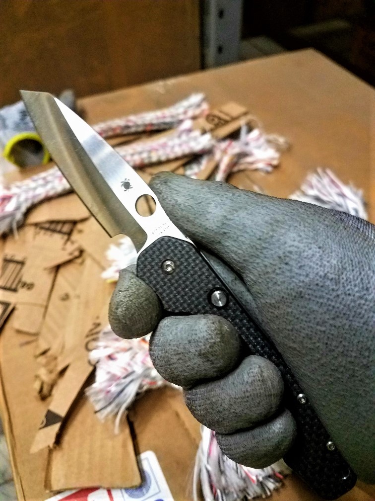 During the "what Spyderco is in your pocket thread" I've mentioned how incredibly sharp this knife was out of the box. Though I gave it a couple passes on the UF stones and my strop for MY peak sharpness. It just seems to be so perfectly ground, I don't have another knife like it honestly. After the first 3 days of typical warehouse cutting, it still had that insane edge and I had a feeling it would already be the winner after 3 days.
