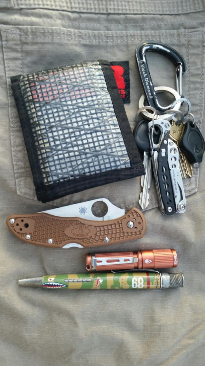 So most of us were faced with a completely new set of demands and priorities in a very short time slot. Myself I pretty much just continued to use what I've EDCed for the past 14 months or so>> however I have added some more hardware. I've added an extra flashlight and a full time Hawkbill blade since all of this has come about.